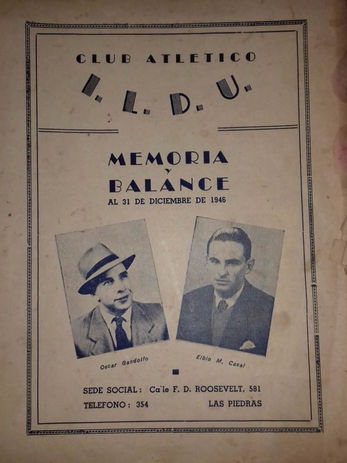 P.T.: Entre los fundadores del Club Atlético ILDU y su primer presidente, estaba Carlos María Cabrera. Su padre tenía una tienda de mucha tradición en Las Piedras, y él convino con ILDU la concesión de las camisetas. Con el tiempo y a través de algunas personas de aquella época y del escribano Rossi Pasina, pude confirmar que efectivamente fue así. El cambio fue porque Carlos María Cabrera le pidió las camisetas e ILDU le dijo que se las daba contra la compra de una importante cantidad de lanas, aparentemente, lanas como para tener surtido por un tiempo casi de años. De ahí sale el nombre Club Atlético ILDU, con el cual funciona, incluso cuando obtiene su personería jurídica, hasta una Asamblea General Extraordinaria que se realiza el 6 de junio de 1947, cuando se resuelve el cambio de nombre pasando a denominarse Club Atlético Juventud.R.P.: Vamos a empezar a decir que ILDU quiere decir Industrias Laneras del Uruguay. Alguno dirá por qué le pusieron ese nombre a un club de fútbol de Las Piedras, muy lejos de la fábrica textil de los productos ILDU, en la calle Veracierto, en Montevideo.